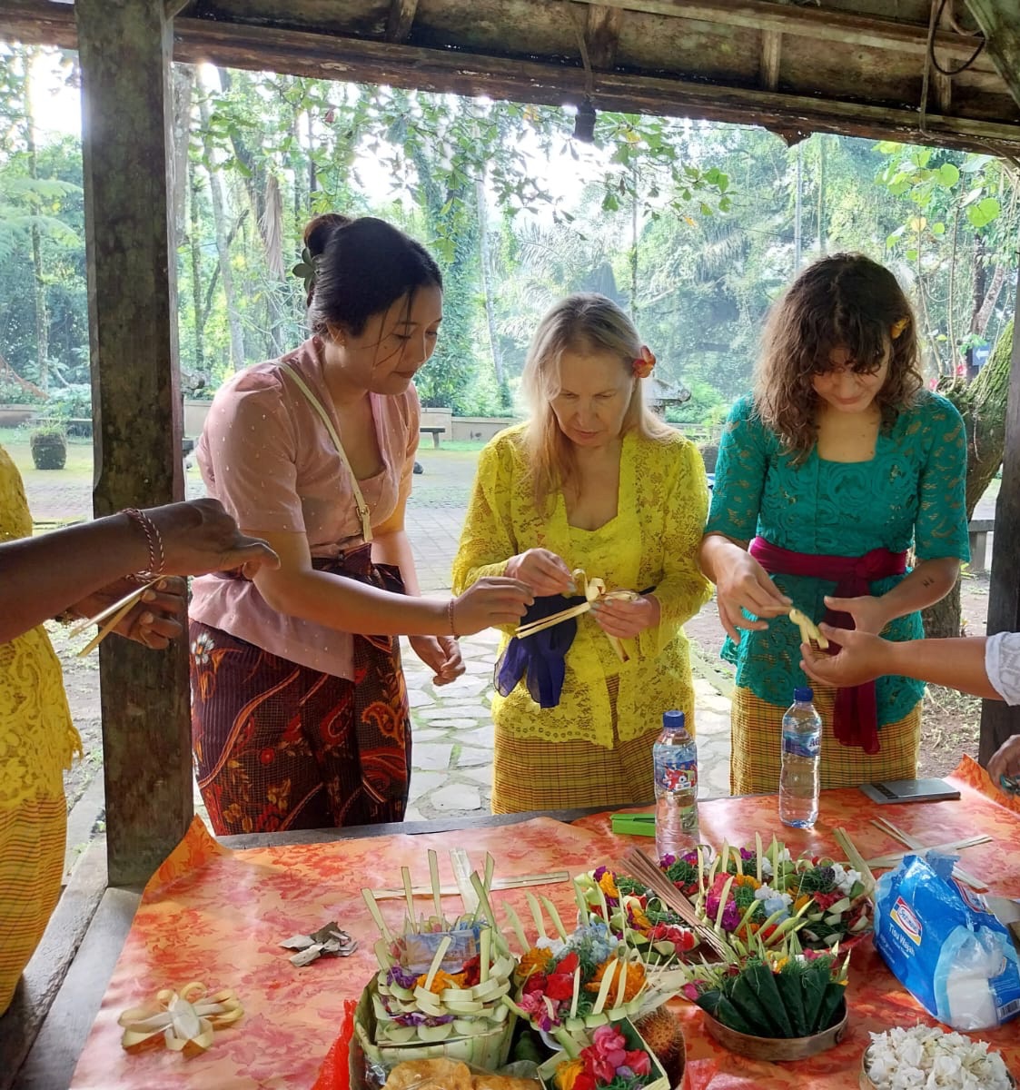 Prosesi dimulai dengan membuat canang sari, persembahan kecil penuh makna sebagai wujud syukur dan keharmonisan. Aktivitas ini menenangkan hati dan menyiapkan diri untuk penyucian.